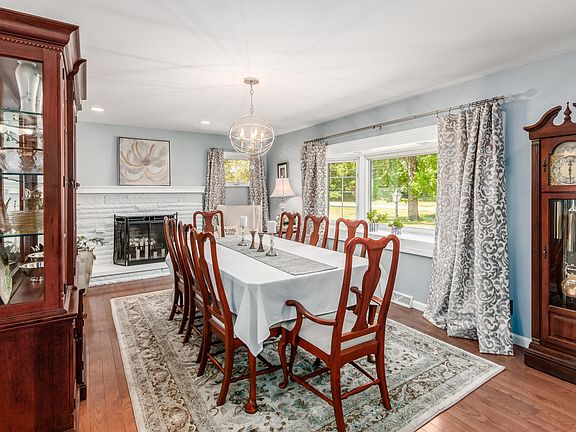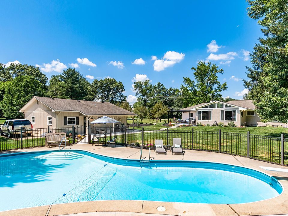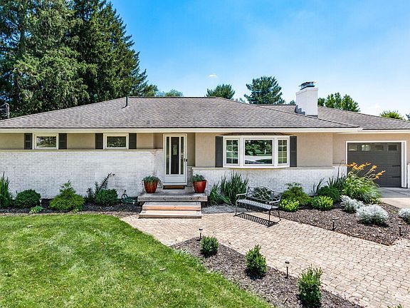 Agent owned. Freshly renovated ranch home backs to Medallion Meadows tee #5, has large pool, oversized 3 car detached garage complete w/heater & full bath. Air BNB or In-Law Potential! On 1.9 acre lot! Amazing family room w/new Anderson windows overlooking the beautiful property. Open floorplan great for entertaining. Kitchen has lots of white cabinets & black granite countertops. New appliances in 2020. Can lights. Eating area. Italian stone flooring. Front room w/fireplace & bay window is currently dining room - could be 2nd living room. Hardwood flooring throughout main level except kitchen. Main bath & owner bath freshly remodeled down to the studs. 3 bedrooms are smaller but good closet space. Lower level w/new bedroom w/egress, bath & family room w/fireplace. Attached 1 car garahe.