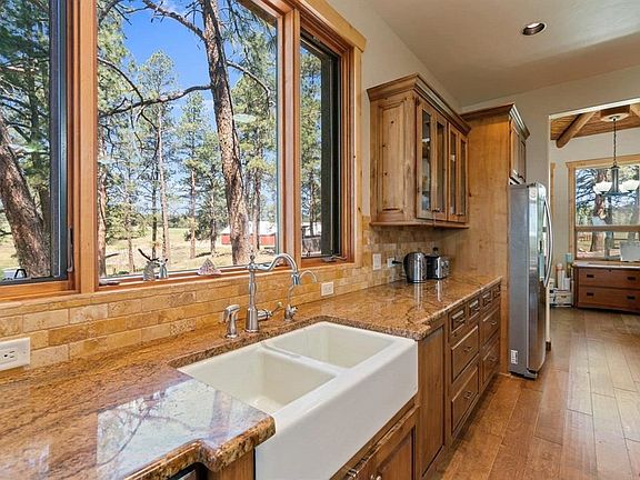 The Pine Meadow Ranch spanning over 79 picturesque acres, this serene ranch is a haven for nature lovers and those seeking a peaceful retreat in Beautiful Bayfield, CO! Nestled in the heart of the stunning San Juan Mountains, this charming multi-home property offers the perfect blend of rustic charm and modern comfort. Main House: 3 Bedrooms, 2 1/2 Bathrooms built in 2005: Enjoy the comfort of a spacious main house, nestled next to a tranquil pond, the main house boasts of breathtaking views of the Pine River Valley. Guest House: 2 Bedrooms, 1 1/2 Bathrooms: Perfect for guests with an open kitchen for a welcoming and comfortable stay. A charming farmhouse adds to the property's rustic appeal with 4 bedrooms and 1 Full bath 1 3/4 bath and 1 1/2. There is a Equine barn with a tack room bathroom with running hot and cold water, hay storage, Large stall, feeding area, that accommodates up to 8 animals and a outside riding Arena. A versatile Shop with a 7 1/2 horse power Air Compressor plumb throughout the shop, ideal for agricultural or hobbyist, the property features lush, producing hay fields with extensive irrigation, perfect for agricultural endeavors. The ranch backs up to an Agricultural Conservation Easement, ensuring the preservation of the surrounding natural beauty. This is an unparalleled opportunity to own a piece of Colorado's scenic landscape. Don't miss out - schedule your showing today and experience the tranquility and beauty of this remarkable property!