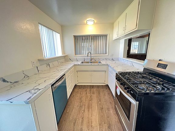 Enjoy a fresh, modern kitchen with brand-new quartz countertops, sink, faucet, dishwasher, and range. The home boasts new vinyl plank flooring throughout, a cozy fireplace, and skylights that bring in abundant natural light. Some new vinyl windows and fresh paint throughout add to the updated feel.