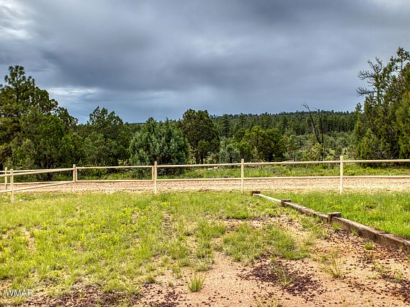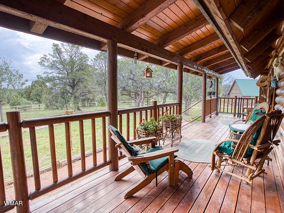 Here is your opportunity to own a full log cabin, completely fenced on five acres of horse property and less than five yards from the National Forest. That's right, no need to load your horses in a trailer. One can easily saddle up and ride to their heart's content right from home. Only 25 minutes to Show Low, 12 minutes to Linden Valley arena and 25 minutes to Heber. Steel pipe fencing encompasses the entire five acres. The front portion of the property where the log home is located is separately fenced to keep livestock away from the premises. The property includes a private well, (appx. 600 feet deep) well house, hay barn/tack room. A separate storage shed for storing ATV/tools or could possibly be converted into separate living quarters. Many mature trees surround the property from Ponderosa Pines, Pinon trees, Shaggy Bark, Juniper and Aspen trees. One will immediately feel at home when walking up to the cozy fully covered front porch which has panoramic views of the property & surrounding area. The interior exhibits beautiful log walls, wood flooring and wood beams throughout the living room/kitchen area, floor to ceiling brick fireplace, vaulted T&G ceilings with skylights that bring in a lot of natural light and an open kitchen with many storage areas. The lower level includes the Master bedroom and master bathroom that has a lovely 6 foot porcelain clawfoot bathtub. The second bedroom and guest bathroom are also located on the lower level. The upper level includes a large third bedroom, bathroom and what's currently, the office/reading area. The home shows pride of ownership and is very well cared for! Call today to schedule a private showing of this one of a kind property! Sunrise Ski Resort is in close proximity to this property where you can enjoy skiing, snowboarding and sledding on the three different mountains available with the highest peak at 11,000 elevation and 62 different runs. During summer they offer archery shoots, the largest zip lining course in the state of AZ, hiking and biking. This home is also very close to more than 34 lakes and reservoirs and over 320 miles of beautiful streams and rivers which consists of many different species of fish. Perfect for fishing, fly fishing, boating and sightseeing. There are more than 180 miles of hiking trails within the region. Most trails were once old logging roads between eight and 16 miles in length and ranging in elevation from 6,500 feet to over 11,000 feet. A large number of animal species live in the area from Bull Elk, Mule Deer & Coues Deer, Turkey, Antelope, Brown Bears and much more! The White Mountain area is definitely a place you should be considering for your primary/secondary home location!