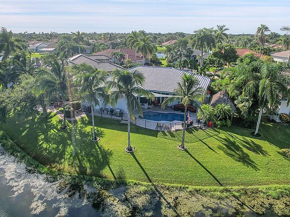 Experience unparalleled luxury in this 5-bedroom/3 bath waterfront home in the highly desirable Kensington, Glen. Revel in serene lakeside views from your beautiful pool with travertine pavers and a new 2022 roof. Entertain effortlessly with a stylish tiki hut and bar, while relaxing by the fire pit surrounded by spectacular landscaping. This home Boasts: a remodeled kitchen, master bath, a walk-in closet for a Queen, a highly desirable triple split floor plan, porcelain tile, cul-de-sac, impact windows, SS appliances, tons of yard space, large paver driveway and a sunset to die for. Don't bring your suitcases because you will never want to leave again. This property is truly one-of-a-kind—you won't find another opportunity like this. Zoned for highly desirable Stoneman Douglas HS.