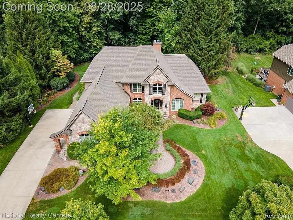This custom property is tucked away on a quiet cul-de-sac is in the highly desired Oakhurst Golf community. The secluded outdoor space features a paver patio, built-in gas grill, fire pit, and professional landscaping, creating the perfect setting for gatherings. Inside, you will find a custom remodeled kitchen with antique white cabinetry, custom crown molding, rustic alder island, high-end Thermador appliances, limestone counters, tile backsplash, and a walk-in pantry. A formal dining room with butler’s pantry is ideal for hosting dinners, while the two-story great room, with oversized windows offering views of the private backyard. Wood flooring runs throughout much of the first floor, complemented by custom crown molding, wainscoting, and detailed trim work that elevates every space. The first-floor office, updated in 2020, features beautiful custom built-ins that add class and functionality, making it a perfect workspace. The primary suite is also located on the main level and includes a cozy sitting area with gas fireplace, direct access to the patio, and two custom walk-in closets with built-in organizers. The spa-like bath offers a walk-in marble-tiled shower, soaking tub, and elegant wainscoting. Upstairs, you’ll find three additional spacious bedrooms—one with its own attached bath and another two connected by a Jack and Jill bathroom. Closet systems are thoughtfully integrated throughout the entire home for effortless organization. The lower level, with nine-foot ceilings, finishes off the home with a theater room, game room, and abundant storage. Recent updates ensure peace of mind, including a new roof (2023), two new AC units (2023), and fresh exterior paint (2023). The kitchen remodel and office renovation were both completed in 2020. An attached three-car garage for added convenience. Located in Oakhurst Golf community and served by award-winning Clarkston schools, this home is truly a rare find.