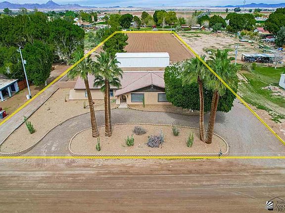 AWESOME Mini Farm possibilities!!! This property has it ALL! 5 beds, 3 baths, acreage and a permitted outdoor 30x70 shop. Both the shop and home are 100% Surge protected.This home has a kitchen with plenty of storage. The entire house is tiled! Enjoy the oversized mud room, extra den off the kitchen and the space throughout the home. Use irrigation to water over 2 acres of land. Not many homes with this much land in Yuma! Come see it!