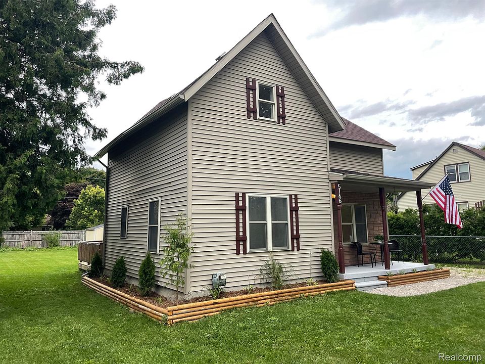 Completely remodeled and move in ready 3 bedroom 2 1/2 bath farmhouse. New flooring throughout, new roof and gutters, new light fixtures, new landscaping. This house is a perfect starter home, second home or rental. 2.4 miles to the school and only 12 miles to Lake Huron! Enjoy your first floor master with en suite bathroom. The other 2 bedrooms are located on the second floor and very large as well and share a full bath with tub. The main floor half bath, laundry room and storage are all connected. The kitchen comes complete with stainless steel appliances. The deck overlooks a spacious backyard and firepit along with a large shed. This house is priced to move and you can have possession at close. All kitchen appliances and washer and dryer are included in the sale. Property is agent owned.