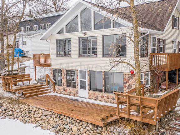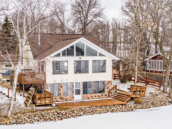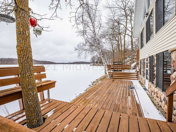 Enjoy fishing from your deck, yes your DECK and practically dip your toes in the water as you fish with this beautiful 3 bedroom, 2 bath home on the water's edge with a fantastic level lot on Lake Six near Frazee. This amazing property features a beautiful great room with a wood burning stove, main floor bedroom, loft, spacious kitchen and dining areas, forced air heat with central air conditioning, a 2-stall detached garage, paved roads to the property, two wonderful screened porches overlooking the lake and multi level decks to enjoy the surrounding beauty. Lake six is 196 acres with maximum depth of 140ft and is great for water activities and superb fishing!
