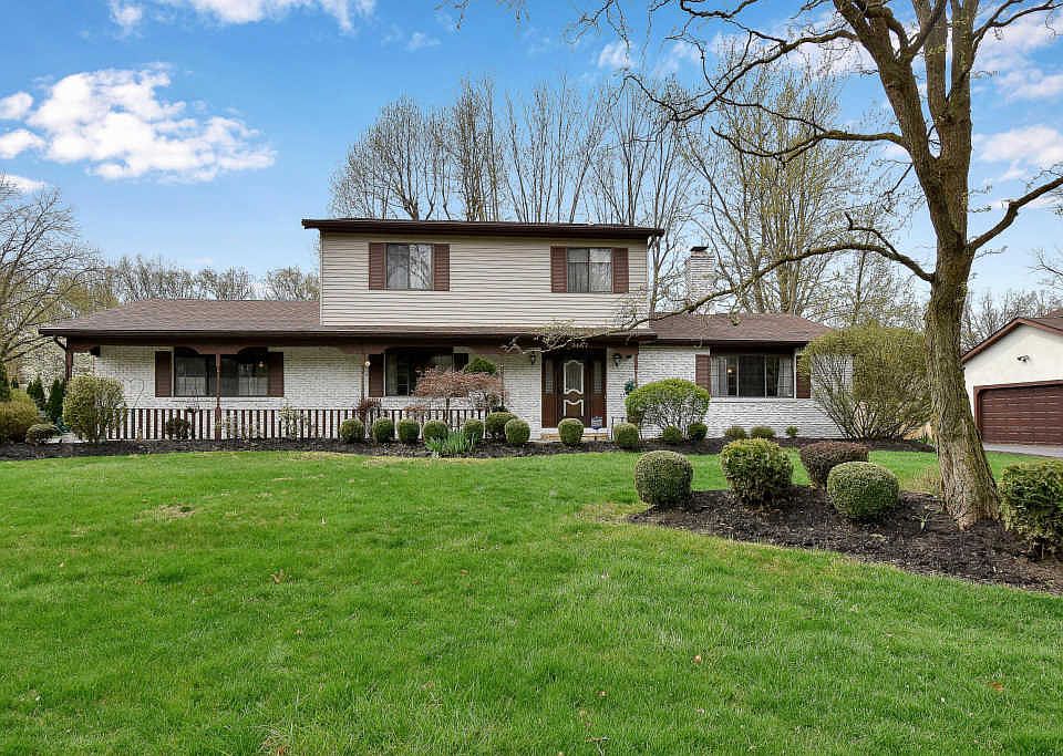Nice curb appeal! Lovingly landscaped front yard brings you to the paver mini-patio and the entrance to this 4-bedroom in an established neighborhood w/no HOA. New neutral flooring. Formal living & dining rooms. Living room has large front window and a full stone wall with wood-burning fireplace. Family room off island kitchen with slider doors to patio as well as a wall of cabinetry and the same fireplace. Kitchen has stainless fridge and oven; built-in desk area. Convenient 1st floor laundry w/built-in folding counter. Mature trees; very private back patio. Close to Columbus Country Club and Kelley Park. Security system is leased.