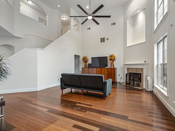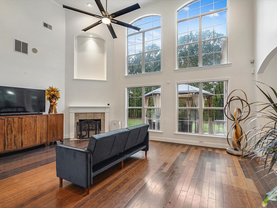 This stunning property offers peaceful living on a spacious 2-acre lot, nestled w/in a quiet cul-de-sac & enveloped by lush woods for ultimate privacy, w/ a tranquil lake just a short walk away. The living room boasts soaring two-story ceilings, creating an airy, open ambiance w/ abundant natural light & custom window shades upstairs & down. Off the eat-in kitchen, you'll find a cozy hearth room, complete w/ a second fireplace, perfect for unwinding or entertaining guests. The primary suite is conveniently located on the main floor & offers an ensuite bath w/ dual vanities, a luxurious spa tub, separate shower, & two walk-in closets providing ample storage. A 2nd first-floor bedroom features its own full bath. Upstairs, you ll find 2 additional bedrooms sharing a well-appointed bath, plus a large versatile 3rd room perfect as a play/game room or 5th bedroom. The expansive backyard w/ a small patio offers a peaceful escape w/ Arlington nearby. Seller providing $7500 flooring allowance.