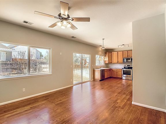 Fantastic single family home in Cherry Creek Schools! Nice open floor plan with a living room, eating area, family room, and 1/2 bath in the hallway. The main floor features beautiful hardwood floors. Upstairs you'll find a spacious master bedroom with an attached master bath, and an additional 2 bedrooms and full bathroom. 2 car garage for parking and added storage. Enjoy a quiet morning or summer evening on your brick patio overlooking the fully fenced backyard. This is a great opportunity to get into a well-cared for home in a great school district!