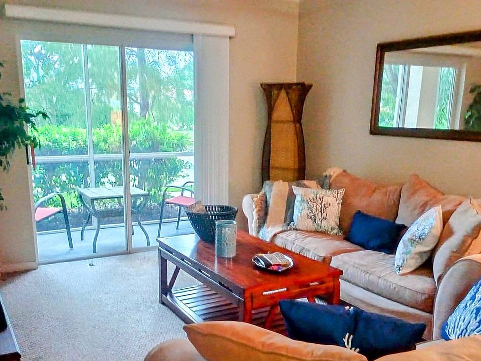 1 bedroom / 1 bath beautifully decorated unit in a community with all the amenities. Large garage, washer and dryer in unit. 1st floor, very quiet. Lanai has lake view.