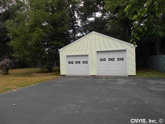 One-owner Cape on partly-fenced, half acre double lot. 3 bedrooms, 1.5 baths, fully applianced eat-in kitchen, formal dining room. 1st floor bedroom could double as a den or office. Attached 1-car garage w/basement entry. Additional 24 x 30 detached garage. Double-wide blacktop driveway. Home is in better than average shape for its age. Basement partly finished & dry. Central air. Close to bus, airport, Route #81 & conveniences. Perfect for 'Car Buff', contractor, woodworker, electrician, etc. Call Listing Agent, Bob Schultz: (315) 671-1641 for further details.