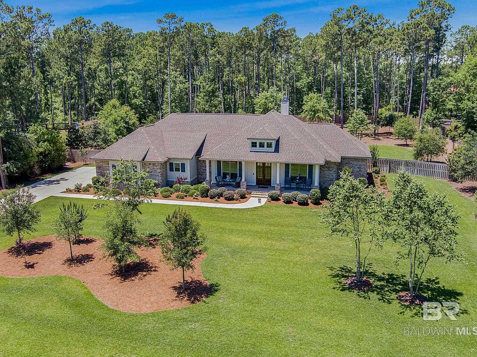 Welcome to your dream home in the Martyn Woods neighborhood of Gulf Shores, Alabama. This beautifully maintained Gold Fortified, 4 bedroom, 3 bath all brick home by Truland Homes offers 2,645 sq. ft. of thoughtfully designed living space on an incredibly rare 1.56-acre lot, a true gem in Gulf Shores.Step inside and you'll notice the attention to detail throughout. Elegant custom lighting includes a chandelier in the dining room, statement fixtures in the foyer and kitchen, and custom fans with lights in all bedrooms, the living room, and even on the back porch. The spacious living area features a propane fireplace with remote-controlled log set and an included Sony 72-inch mounted TV.The open layout flows into a custom screened-in back porch with wood decking and built-in planters ideal for entertaining or enjoying peaceful evenings. Plantation shutters cover every window, and the master suite features blackout drapes and sheers. All bathrooms have raised American Standard toilets and upgraded shower heads, while guest rooms and the master closet include upgraded carpet (2022).Additional upgrades include double attic insulation, commercial-grade garage flooring, freshly painted porches, and custom landscaping. A central propane tank fuels both the fireplace and a built-in Webber grill. The fenced backyard includes a utility shed and a 12-zone sprinkler system. Ring cameras and floodlights provide added security.A Maytag washer and dryer set (2023) convey, and crown molding in the master and living area adds a refined touch. This rare, meticulously upgraded home offers privacy, space, and convenience — just minutes from beaches, shopping, and dining. Buyer to verify all information during due diligence.
