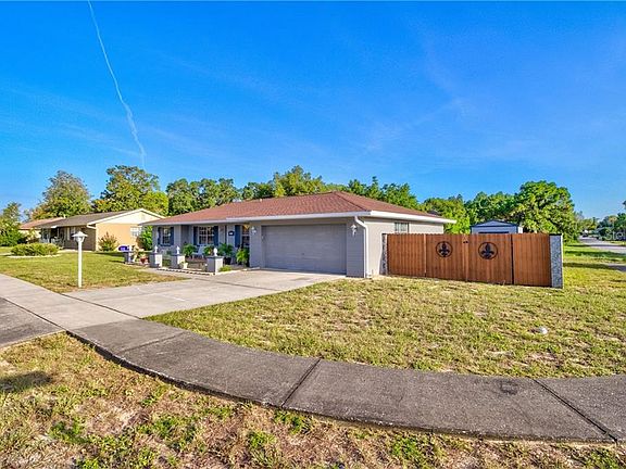 Corner Lot. Beautifully spacious, light, and bright throughout with open concept 3 bed, 2 baths split floor plan home with an oversized 2 car garage. Huge family room, Living Room, and Kitchen with Ceramic Floor throughout the entire house. Enjoy the kitchen with its ample cabinets, Granite countertops, island Kitchen and stainless steel appliances. Outdoors are perfect for entertaining. No HOA. New Roof replaced in 2018, conservation lot with no rear neighbors and best of all fully fenced. This home also includes a huge utility shed for tools and equipment.Located just minutes from the Suncoast Parkway, close to shopping, restaurants, hospitals, and entertainment. Looking for Affordable Home with a lot of upgrades. Here it is.