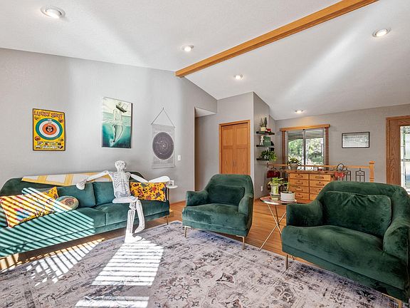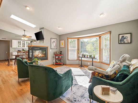 Welcome to this expansive 1970s rambler, set on over half an acre, offering both space and style. With beautiful hardwood floors and vaulted ceilings, this home is bathed in natural light from large bay windows and skylights, providing stunning views of the flat, fully fenced backyard. As you step inside, you’re greeted by a bright and open living area featuring a cozy two-sided fireplace—perfect for entertaining or relaxing. Adjacent to the living room is an informal dining space with built-in storage, more views of the fireplace, and direct access to the deck and backyard. The kitchen, just off the dining area, boasts stainless steel appliances, quartz countertops, black hardware, ample cabinetry, and a floating island with seating for three. A convenient mudroom next to the kitchen offers additional storage and access to the attached 2-car garage. Down the hall, you’ll find the primary bedroom with great closet space and a beautifully updated 3/4 bath featuring a tiled shower, updated vanity, and quartz countertop. Two additional bedrooms and an updated full bath with double sinks complete the main level. The lower level offers even more living space, a updated 3/4 bathroom, a large rec room, a multi-purpose area perfect for a home theater, office, or extra bedroom, and an exercise room. There’s also a spacious bedroom, utility room, and laundry area. Situated on a large corner lot with a new retaining wall and landscaping, this home includes not only the attached 2-car garage but also a separate detached 2-car garage—ideal for storing lawn equipment, boats, or extra vehicles. The location is unbeatable, just minutes from Hidden Valley Park, Canterbury Park, Lifetime Fitness, shopping, restaurants, and with easy access to CR13 and 35W. This is a home you don’t want to miss!