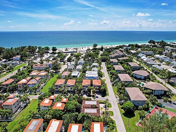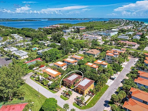 Welcome to Villa Chez Shell! Step into a beautiful Mediterranean-inspired home located in Holmes Beach on Anna Maria Island. The highlight of this renovated three bedroom and three full bathroom single family home is its tropical private backyard complete with an inviting heated pool featuring a soothing stone waterfall and a swim-up Tiki table. The entire backyard is surrounded by palm trees, lush tropical foliage with blossoming flowers and all the privacy you could wish for. The bottom floor consists of the 2 single car garage bays and a covered lanai room off of the pool. This lanai room is shaded by a pergola giving this area a real Mediterranean feel. It's perfectly equipped for dining with a refrigerator and granite counter for food prep. From the lanai you enter the first floor foyer with a staircase to reach the second floor. Upstairs you will find an open floor plan consisting of the living room, dining room, kitchen, two master suites with ensuite baths (both renovated in 2015) and walk-in closets, an additional bedroom, full bathroom and a laundry area within walk-in pantry. Ceiling fans, white trim, crown molding, raised panel doors, neutral paint and ceramic tile throughout add an upscale touch to this home. The kitchen with its crisp white cabinetry, granite countertops, high-end stainless steel appliances (new refrigerator in 2020) provide a perfect place for those dinners in. Both ensuite bathroom showers feature custom tile work and glass enclosures - one with a bathtub as well and white cabinetry and granite countertops. The roof, AC, washer, dryer, and dishwasher were all replaced in 2014, and the pool pump was replaced in 2018. You are sure to enjoy the serenity and privacy of this Anna Maria Island oasis! With so many opportunities with this home- either move right in and walk to one of the top beaches of the world or end your day watching a breathtaking sunset at Bean Point... or profit off of the amazing rental opportunity as Villa Chez Shell is an established, high performance vacation rental property with over $107k in gross annual income and more than $55K on the books already for 2022! Close by to shopping and the best restaurants, this turnkey furnished home is ready to be your new home or investment property.