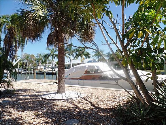 There are more than 1,900 square feet of living space in this Holmes Beach canal home, ready for a forward-thinker who wants an entry level waterfront property on lovely Anna Maria Island. In the living area/dining area/great room are vaulted ceilings over original terrazzo floors; the two original bedrooms on the left side of the house are good sized and the master bedroom includes an ensuite bath. A tiled Florida room stretching across the back of the home is sunny and bright. The U-shaped kitchen is at the front of the house. A third bedroom is to the right front of the home off the kitchen area, and on that same side are indoor utility and (bonus) workrooms. Out back is a recently capped seawall with 'pins' to protect the wall itself and a nice dock. And off to one side is a shaded workshop for all your projects. The central air conditioning reaches across the original portion of the house; a wall unit provides cooling to the front right bedroom. With a circular drive and carport, it has potential for good curb appeal and it has a very low maintenance yard. Current Holmes Beach zoning regulations allow this property to be rented with a 30-day minimum time period.