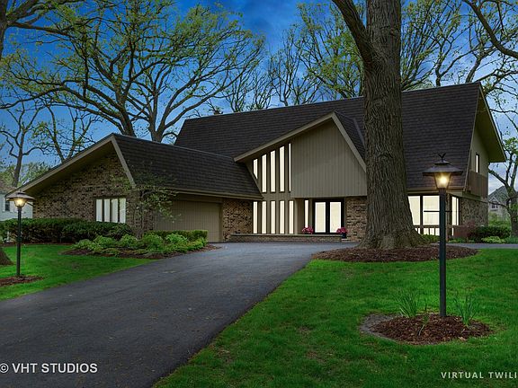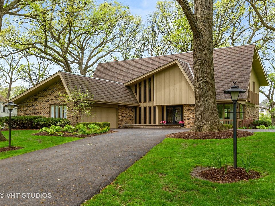 Beautiful 4 bedroom, 3 bathroom Mid-Century Modern home located in Prestwick. Home sits on a large GORGEOUS wooded lot overlooking the 15th fairway of the Prestwick Golf Course. There are 14 sliding glass doors throughout the home all with AMAZING views. Main floor features spacious kitchen with custom oak cabinets, subzero refrigerator and double ovens; large family room with gas fireplace, combination dining/living room and an amazing screened porch off the kitchen. Second floor features a huge master suite with two walk in closets, spacious private bathroom and balcony facing the golf course. Three additional bedrooms and large 2nd bathroom with Jacuzzi tub. Finished basement with entertainment area, family room with fireplace and laundry room. Multiple storage closets throughout the house. Two AC units and two furnaces. Award winning school district and minutes from I-80, I-57 and several Metra stations. You don't want to miss this opportunity!!!