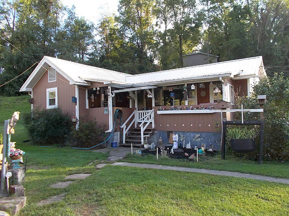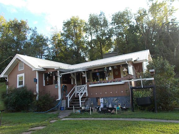 Honey STOP the car! Affordable Home, well maintained and cared for with many extras. Property boarders small scenic creek. Newer metal roof, newer replacement windows, blown in insulation. Newer laminate floors and some newer wood floors. Lovely front porch to sit on. Beautiful stone outdoors fireplace, one car garage, two sheds. All televisions convey. Property maybe be in flood zone. Buyer to determine if in flood zone. Buyer to determine square footage. square footage is approximate.