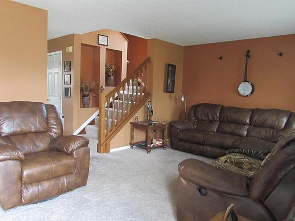 Roomy two story home with new windows, newer roof, new hot water tank and stainless appliances. Living room has attractive open staircase to second floor. Large open kitchen with eating island and space for dining table. First floor utility. Finished rec room in lower level with space for an at home office. Rear yard has generous shed for extra storage and wonderful view of subdivision pond to enjoy all year long. Walking distance to Middle and High School. Quick possession if needed.