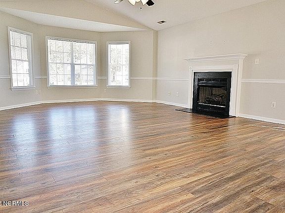 Welcome Home! This 4 bedroom 2 Bath home is just what you have been looking for and minutes from Camp Lejeune, Swansboro beaches, shopping, and restaurants. As you pull up you will appreciate the beautiful established landscaping and extra concrete parking pad. The covered front porch welcomes into the spacious living room that features vaulted ceilings, updated laminate flooring, and fireplace with custom mantle. The bay window combines three windows with angled sides that extend the room and adds plenty of natural light. The laminate wood flooring continues into the dining room which is a good size and is open to the kitchen. The kitchen has plenty of cabinet and counter space and stainless steel appliances including refrigerator to remain in the home. Make your way down the hall to find a large owners suite which includes a sizable walk in closet and an owners bathroom with a soaking tub and shower with beautiful tile surround accents. You will also find the 3 other bedrooms are generously sized too. The fenced in backyard is huge and sure to please! You will not be disappointed with this home and all it offers for such a great price. Don't hesitate! Call today for a room by room tour of this fantastic home.