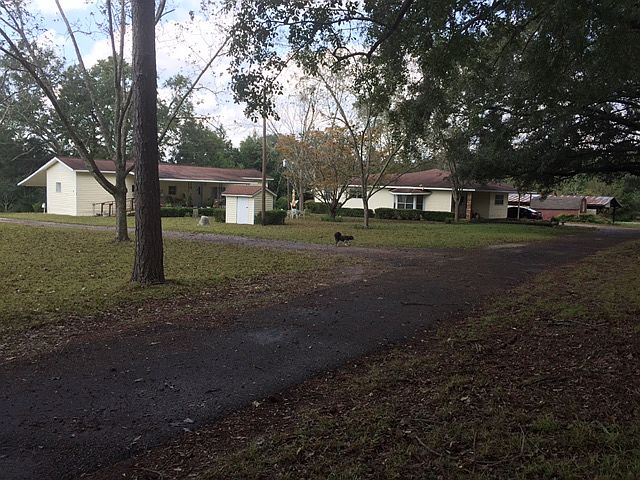 Property consists of two homes on a secluded 6.46 acre lot nestled back in a pecan grove. A long, paved driveway flows alongside huge, ancient Oak trees. Main residence is close enough to secondary home to allow for easy access for taking care of other occupants, if needed. Has two wells and 2 septic tanks. Property line goes to ditch (middle) in back and right side according to owner. Wildlife comes thru this beautiful property. Deer...etc. Pool needs to be repaired before it can be used.