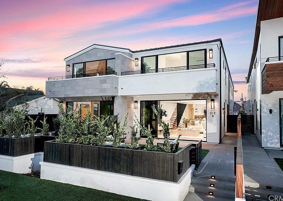 Welcome to 517 Bolsa Ave! 2020 NEW CONSTRUCTION! showcasing the highly sought after Newport Heights neighborhood with a coastal modern flair. True open concept living with ten-foot ceilings throughout the entire home to provide for a seamless flow from the kitchen and living area out to the yard through nine feet of wall-to-wall sliding glass. An oversized kitchen island complimented with Dacor appliances, quartzite countertops, smart lighting, and custom cabinetry. Enjoy the downstairs office which provides a sense of privacy kept from the rest of the house. The porcelain tile flooring leads to a single stringer custom 3" white oak staircase with custom steel railings, creating just the right amount of contrast to the upper level. The upstairs landing boasts large gallery walls and three large geometric skylights. The master bedroom features custom built-ins and ceiling heights which reach fourteen feet. Fleetwood glass sliders open out to a private balcony. An oversized master bathroom includes a steam shower and separate soaking tub with designer fixtures. The master closet is custom built with LED lighting throughout. Two middle bedrooms share a Jack and Jill bathroom. The large back bedroom features ceiling heights up to 13 feet and offers the versatility of being used as a den or even an additional master suite. Smooth stucco and stone on the exterior and striking lines provide the home with a strong presence. Don't miss the opportunity to call this home!