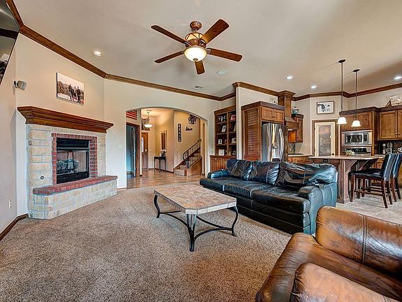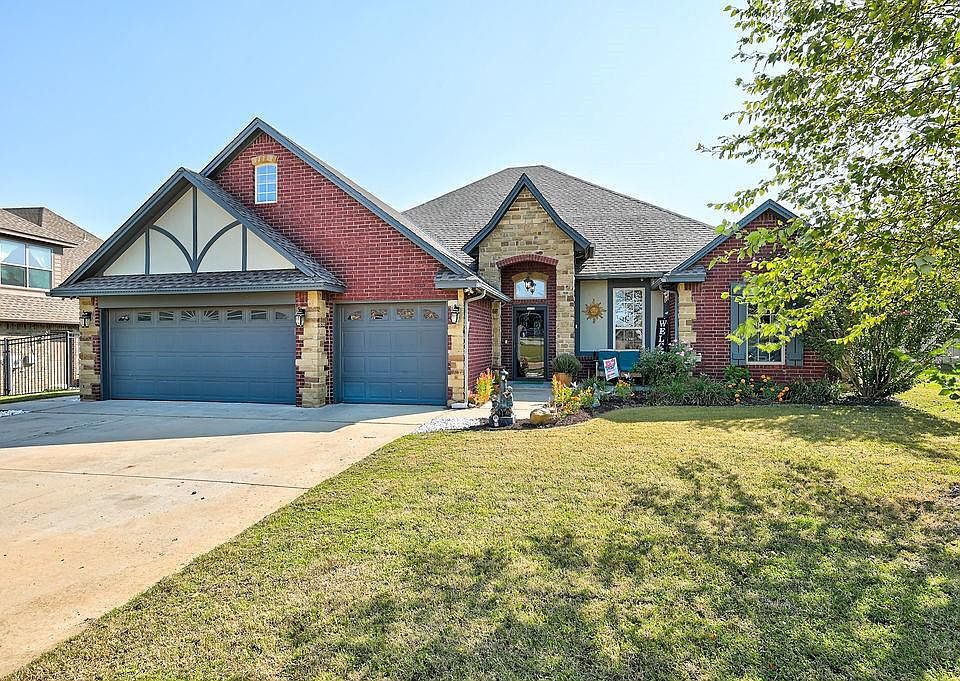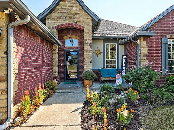 Well-maintained home in Yukon Schools with lots of square footage! This 3 bed, 2.5 bath, 2549 sq ft home, built in 2008 welcomes you with a large tiled entry. Spacious main living area features beautiful wood crown molding throughout, highlighting the brick and stone fireplace. Open concept kitchen features granite counter tops, gas range, spacious pantry and center island perfect for mornings with the family. Spacious master bedroom has wood trimmed tray ceiling and huge walk-in master closet with built-in shelves and storage. Master bath features double vanity, oversized corner jetted tub, and tiled walk-in shower. Huge separate office with custom built-ins. Large laundry room connects to master suite and includes sink and tons of extra storage. Bonus flex room upstairs is perfect for kids area, movie room or extra bedroom. Huge covered porch leads to spacious yard that backs up to greenbelt! Includes in-ground storm shelter. Extra features are a must-see! Contact Jesi today!