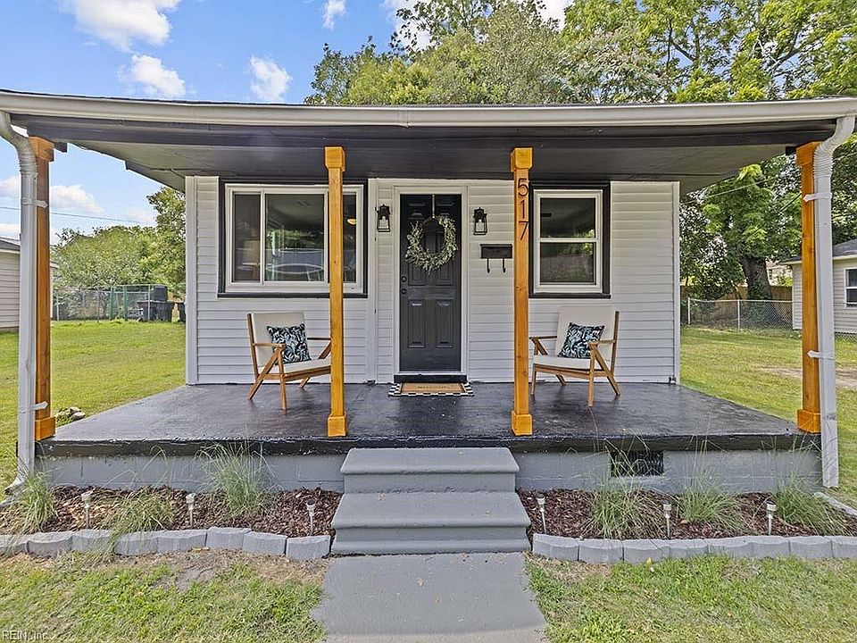 Step back in time to this beautifully renovated two-bedroom bungalow just minutes from downtown Elizabeth City where you can  grab coffee at Muddy Waters Coffeehouse, and a few new plants for your new home at Roots Plant Company. The Coast Guard  Base, and three local colleges are so close - what a great investment opportunity for short or long-term rentals. Nothing has been  missed in this renovation to include a brand-new roof, water heater, bathroom and so much more - all the way down to the  crawlspace. New flooring, fresh sheet rock, new kitchen cabinets with butcher block countertops, details galore - full of character  and charm ready for you to move right on in or rent right on out! Grab that coffee and let the front porch sittin' and sippin' begin!