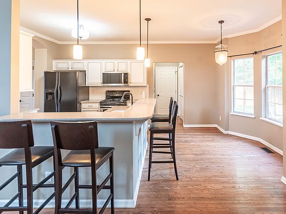 Beautiful home in Fieldstone Farms! Hardwoods throughout the main floor, fireplace, eat-in kitchen with gas stove opens into living area with vaulted ceilings. Hobby/media room could be used as a 4th bedroom. Separate dining room, office. Large master suite with dual vanities, and separate shower and tub. Screened deck w/ TV. Fenced in back yard w/ fire pit. Washer/Dryer included/available but not maintained. Community pool, clubhouse, fitness center, park. Pets welcome.