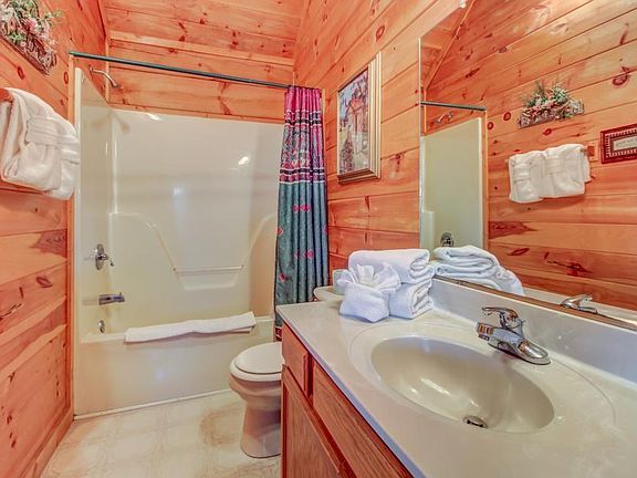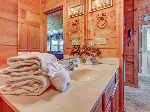 Located on the Arrowhead Log Cabin Resort, this cabin is close to numerous restaurants and retail stores. Gatlinburg, one of the gateways to Great Smoky Mountains National Park, is just to the south. Numerous indoor and outdoor attractions are within a short drive of your front door. Inside, high ceilings make the main room feel spacious. A stone gas fireplace dominates the living area, inviting you to snuggle up on the comfy overstuffed couch with your loved one. Spend a quiet night in while you watch a movie on the cable-equipped flatscreen TV. Available for a month - month rental. Fully Furnished rental.
