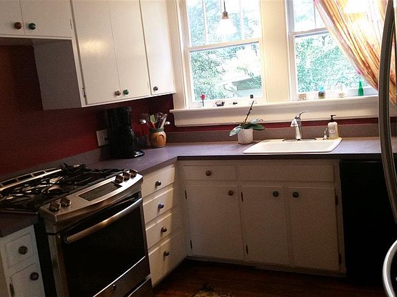 Awesome historic home in Brooklyn Heights! Great location for walking to Glenwood South, Five Points, Cameron Village and Fletcher Park. Has great character with a garden shop and sitting area. Brick parking pad in alley way. Updated kitchen and bath. Downstairs guest bedroom/office tucked away by living room. Lovely lighting in dining room and stairwell. Both bedrooms may be painted to a neutral tone. Outside yard area with great garden spots on property. This is a must see!