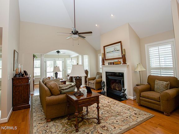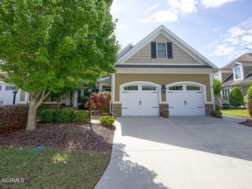 Lock and leave lifestyle! Beautiful golf front home at the Meadows Cottages at Longleaf County Club. This home has many recent updates, including a gourmet kitchen with custom cabinets, Kitchen-Aid pro series appliances, 5-burner gas cooktop, wall convection oven + combo microwave/oven, warming drawer, and Miele built-in coffee maker. Newer master bath with Kohler fixtures is a wall-to-wall wet room with handicap accessible shower, and soaking tub with heated air jets. The open-concept floor plan has a vaulted great room with gas log fireplace, which is open to the second floor and a vaulted Carolina room with great views of the golf course. Luxurious first floor master suite with trayed ceiling. Guest bedroom with ensuite on main level with two additional bedrooms and bath on the second floor along with a loft, flex/media room and walk-in floored storage. Laundry room has a sink, pantry and cabinets. Natural gas hot water. Newer light fixtures. Note there is extra/guest parking directly across the street. The current owner finished storage space into a flex/media room.