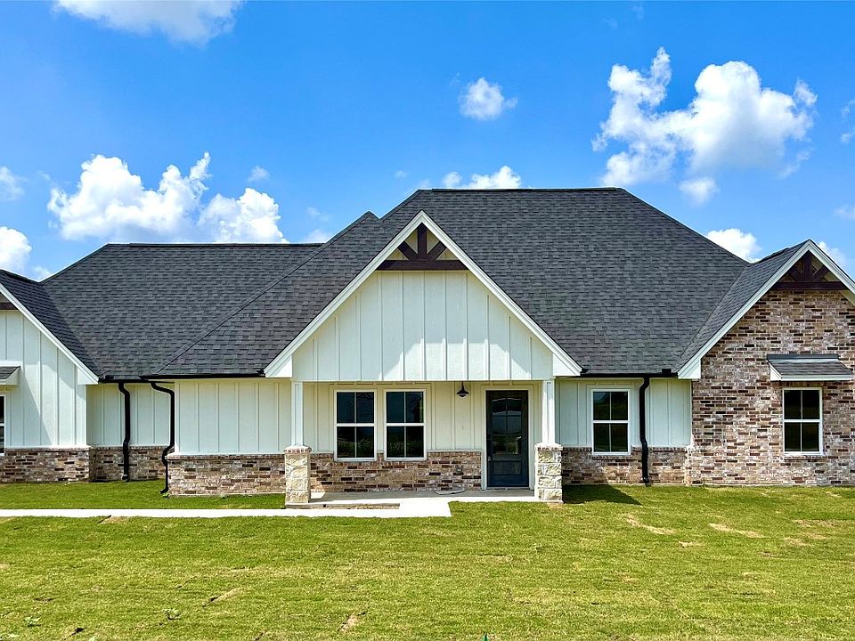 Do not miss your opportunity to own this stunning, brand new, 3 bed 2 bath home located just outside of Decatur on 1.20 acres! This home features board and batten siding with brick and stone exterior, gutters, sprinklers, shed roofs, custom alder front door with water glass, open floor plan, shiplap fireplace, soft close cabinets, large kitchen island, quartz countertops, designer lighting, mudroom with full laundry, ensuite master bath with freestanding bathtub and separate tiled shower, double sinks in both the master and guest baths, soaking tub in the guest bath with tile walls, luxury vinyl flooring throughout the living and carpet in the bedrooms. 2 car garage big enough for deep freeze or built-ins for storage. The back porch boasts incredible views of pastures and the home is connected to the Bolivar water line. New sod and sprinklers have been installed! Eagles Canyon Raceway is only 3 miles South, Fossil Pointe Gun Range is within 4 miles, Gainesville only 20 miles North.