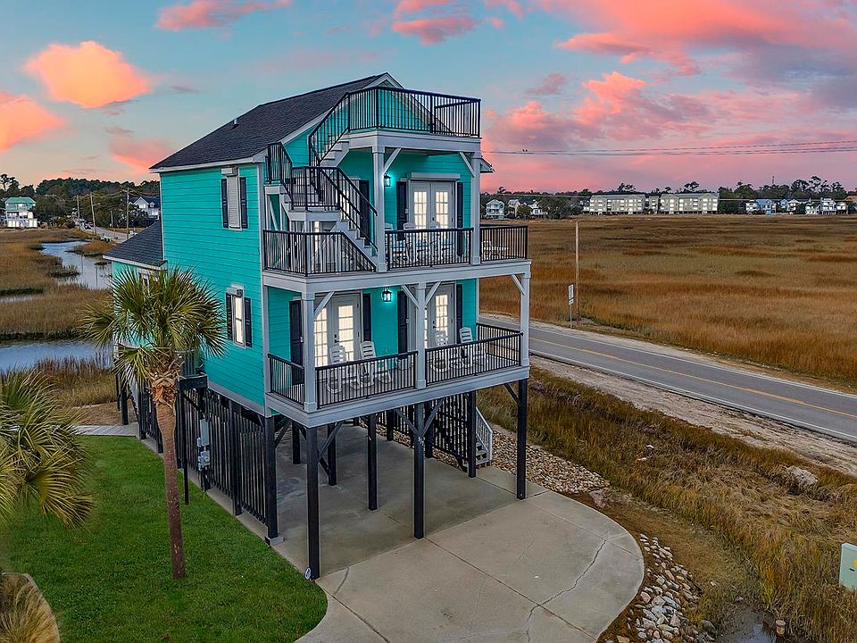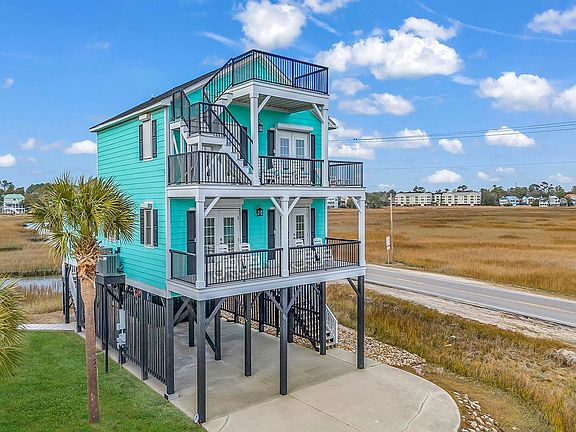 Welcome to 517 N. Dogwood Drive, where coastal living meets unparalleled comfort and convenience. Nestled in the heart of Garden City Beach, this stunning property offers a harmonious blend of modern amenities and breathtaking natural surroundings. Boasting 4 bedrooms and 4 bathrooms, this home is designed to accommodate both relaxation and entertainment with ease. This home provides expansive sunset creek/marsh views, while also delivering ocean views from the "bird's nest", creating an atmosphere of serenity and tranquility. Outdoor enthusiasts will delight in the small stationary shared dock, perfect for fishing and crabbing, as well as the raised deck area underneath the home, offering additional marsh views. Whether you're unwinding on the screen porch, savoring sunset views, or soaking up the sun on one of the two covered decks, outdoor living reaches new heights at this property. The sellers have made extensive improvements with recent upgrades including Hardie siding, composite decking, new aluminum rails, new roof, new carpeting, new flooring, new fixtures, fresh paint, and HVAC unit, as well as hurricane shutters ensuring peace of mind for years to come. The kitchen appliances have been recently replaced, enhancing both functionality and style as well. Offered fully furnished with tasteful decor and furnishings, this home is ready to welcome you with open arms. Whether you're seeking a permanent residence, second home or an investment opportunity, the charm and elegance of 517 N. Dogwood Drive are sure to exceed your expectations. Conveniently located approximately 215 yards away from the Cypress Avenue public beach access, as well as a short distance away from Garden City Pier, arcade, shops, and restaurants, every convenience is within your reach. Don't miss your chance to experience coastal living at its finest! Call the listing agent, or your Realtor, to schedule your showing today and make this coastal oasis your own.
