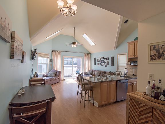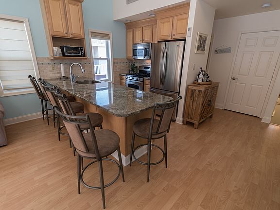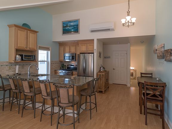 Enjoy beautiful beach and water views from this completely renovated townhome style condo! The lower level entry gives way to a master bedroom and master bath with upscale features, a second bedroom, and a hall guest bath with extended countertop. Tucked away under the stairs is the laundry closet with washer, dryer shelving and hanging rack. Stairs lead to the main living area boasting wood-style laminate flooring throughout, vaulted ceilings and fantastic views! The living room hosts 2 skylights and a slider that leads to your private deck with gorgeous beach views. The kitchen shines with granite countertops, under mount sink, stainless appliances, and a dining area. Also located on this level is a third bedroom and a half bath. Additional features include: granite counters in the bathrooms, brand new windows and doors, off-street parking for 2 cars, storage space, and an outdoor shower. Situated just 3 houses from the beach you can walk to the beach and all of North Wildwood's fabulous amenities!