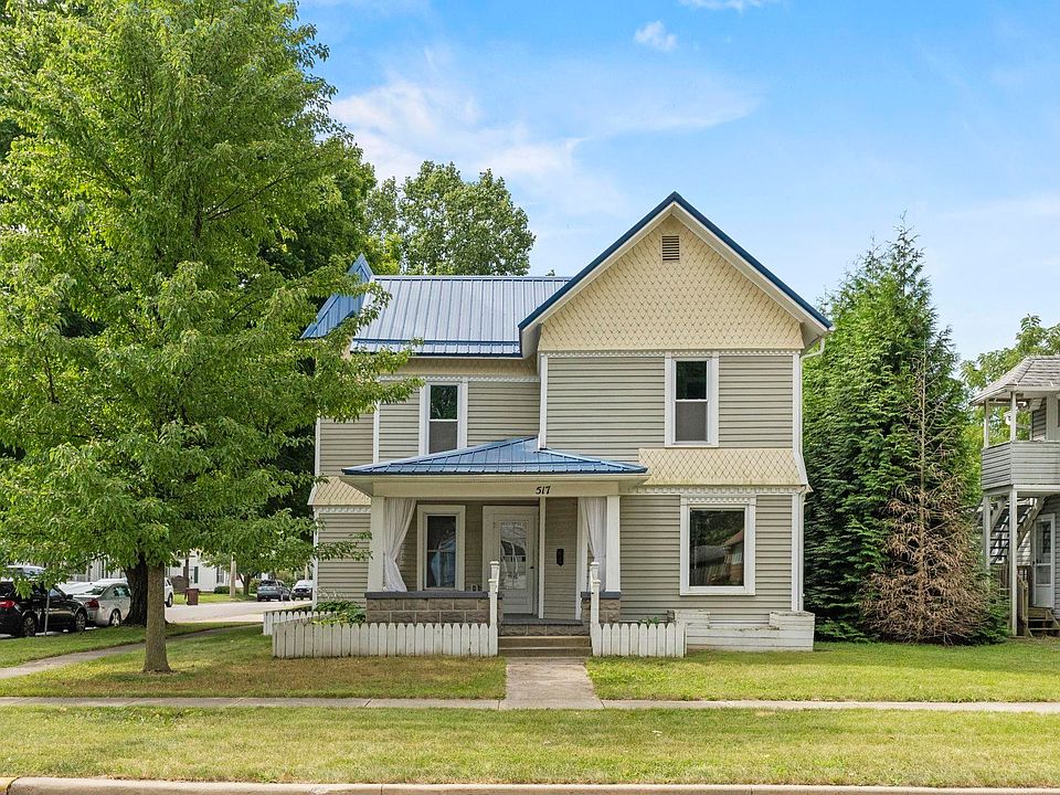 Come and check this one out ! Welcoming covered porch for those fall evenings. 3 bedroom 2.5 bath home on corner lot. Detached 2 car garage perfect for the cars or a work shop. Huge laundry area with lots of storage. First floor master bedroom with large walk in closet. Hardwood floors galore ! Kitchen with island, great for entertaining. New metal roof 5 years ago. This property is walking distance to downtown restaurants and shops.