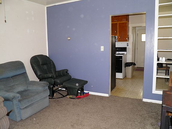 This cozy home has 2 bedrooms, kitchen, dining area and living room on main floor. One bedroom, laundry and bathroom are in basement. The second floor is large open area that is like a bonus room perfect for a home office, bedroom or family room. Home also has small fenced yard with a detached garage and nice sized shed. Property is a possible RENT TO OWN, with references.