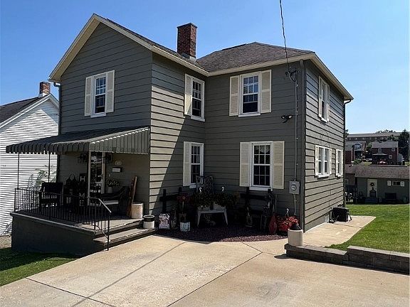Welcome Home to a well maintained and beautifully updated 2 story in the Borough. Concrete driveway is a step away from the covered front entry. Large living space with hardwood floors is open to dining area, also with hardwood. Newer windows let in natural light through out. Maple kitchen, ceramic floor and stone backsplash will make you feel like gathering here. Mud room with new powder room are handy to kitchen area. Beautiful exposed stair case leads to upper level. Upper level was remodeled to include good closet space, new doors and walls in the well sized bedrooms. The full bathroom is updated, linen closet in hallway. Basement has plenty of storage areas and a big laundry room. Covered back porch overlooks the level backyard. Former garage with electric used as storage shed. Fenced in area for a second patio with room for a fire pit. There is electric service in this cozy setting. Additional patio with access from lower level man door. The possibilities are endless here!!