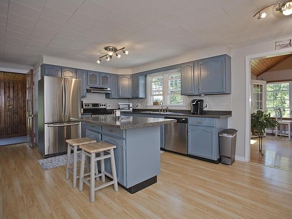 Nestled amongst majestic views of Mount Tom, this beautiful house on 1.5 acres has been recently updated for contemporary style and modern comfort. Beyond the immaculate landscaping and curb appeal await gleaming wood floors and lots of natural light. An open floor plan lets you entertain with ease, as a gorgeous kitchen with a large center island overlooks a living room with fireplace. Skylights in the dining room cast a spotlight while you dine, or enjoy al fresco dining in the stunning backyard with a deck, patio area and brick fire pit. You can also enjoy this view from a charming sun room, plus additional recreational space can be found in the partially finished basement. At night, retire to any of the three bedrooms for a great night's sleep. With so many desirable features, like first floor laundry, bathroom and attached garage, this property is not to be missed! .