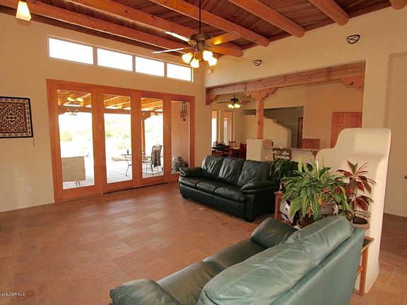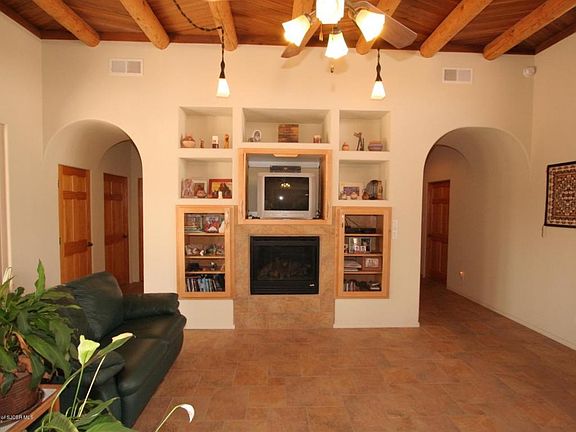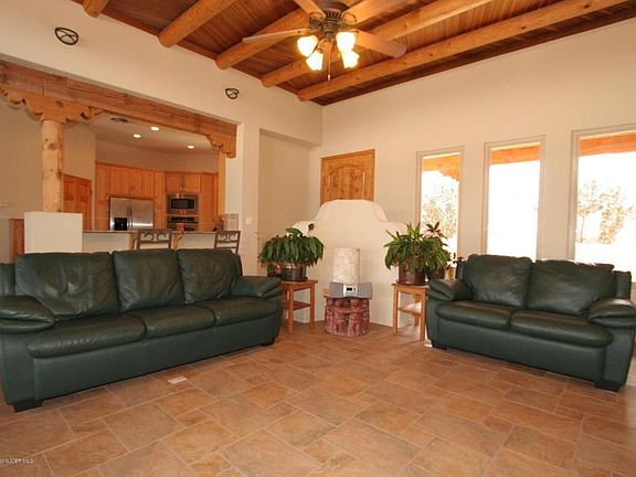 Relax and enjoy the spectacular views throughout this custom Southwestern home built by Leissmann Const. Natural light cascades into the large open kitchen, living room, master bedroom and 2nd bedroom. Second bedroom could be 2nd master. Split bedroom arrangement. Indoor amenities include latillas vigas in the living room and covered patio, solid wood interior doors, French door to patio, patio access from master and second bedroom, in-floor heat, large jetted tub & double-headed shower in master, circulating pump for instant hot water, deep sink in laundry room, cork floor in 2nd bedroom and a tall crawl space with storage. Outdoor amenities include an Endless Pool swimming machine, hot tub, Trex deck, covered patio, apple tree, raised garden beds and spectacular views of the valley and mountains.