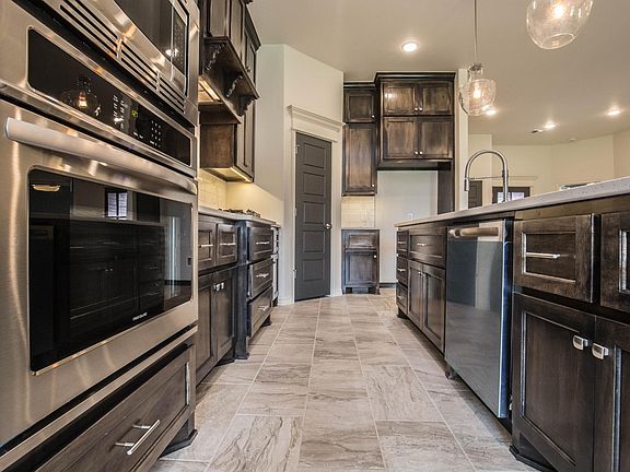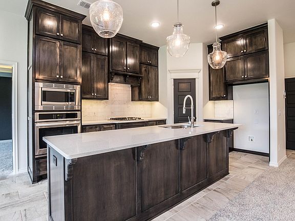This Sage floor plan includes 2,105 Sq Ft of total living space, which includes 1,850 Sq Ft of indoor living space and 255 Sq Ft of outdoor living space. There is also a 595 Sq Ft, three car garage with storm shelter included! Home has 4 bedrooms & 2 full bathrooms! Property is fully sodded with in ground sprinkler system, covered front & back porch. The living room has a gas fireplace with a gorgeous stacked stone surround. 2 large windows surround either side of the fireplace for a natural source of sunlight! Kitchen has stainless steel appliances that include a built in gas range and electric oven, dishwasher in the island, as well as a microwave. Linen closet outside the secondary bathroom, for extra storage. All bedrooms have ceiling fans! Custom cabinetry and 3cm quartz counter tops throughout the house! Master suite come with a double sink vanity concept, Jetta Whirlpool tub, walk in shower and spacious closet with seasonal racks located at the top. This home has a Rinnai Tankless water heater, and whole home air purification system.