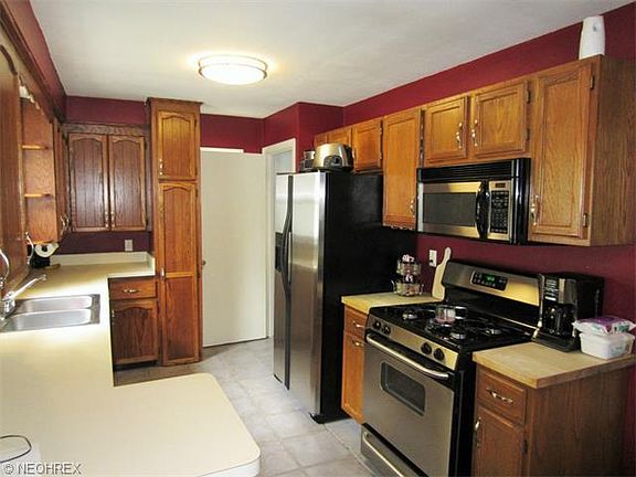 Cute 3 Bedroom Bungalow with 2 generous sized first floor bedrooms, and a very private 3rd bedroom upstairs with a large walk-in closet, full bath with a shower, and a great sitting/office area! Large living room with big picture window, real nice eat-in kitchen with lots of cabinets, stainless fridge, microwave & stove stay! Spacious family room in the basement, lots of storage, and a half bathroom! Gas heat and central air. Outside is an enclosed patio, 2+ car garage, large shed, all on a very deep lot! Move in ready!
