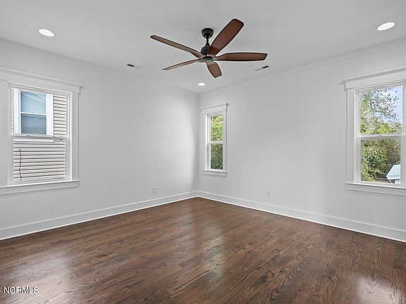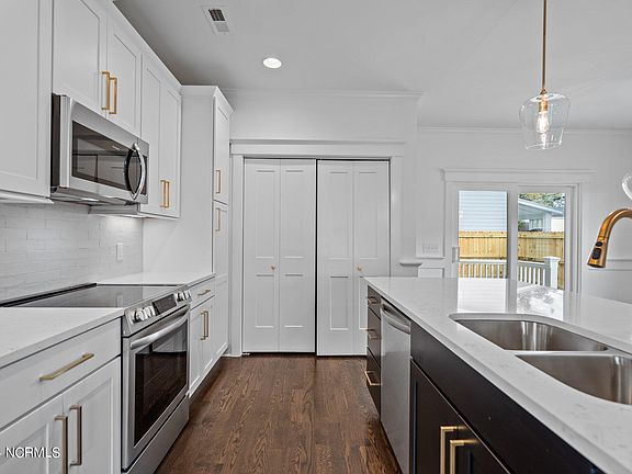 Excellent opportunity to own a beautiful new construction home in the heart of downtown Wilmington just a few short blocks to the Brooklyn Arts District and Live Oak Bank Pavilion. This 1,510 square-foot, 3 bedroom, 2.5 bathroom home exudes sophistication and luxury with its gorgeous finished in place hardwood floors, Craftsman style window and door trim, lofty 9-foot ceilings, chair rail accent, and premium features throughout. An open floor layout encompasses a large living room, dining room, and spacious kitchen, perfect for entertaining. Discover a chef's dream kitchen with quartz countertops, tile backsplash, gold accent hardware and fixtures, stainless steel appliances, two tone cabinets with 42'' upper cabinets, and a large island for additional prep space and seating. Spend the morning relaxing with friends or family in the fenced-in backyard before heading out to explore downtown Wilmington and come home to relax on the covered back porch. Upstairs, your impressive master suite boasts a spacious walk-in closet, and an en suite bathroom with dual vanities and tiled walk-in shower. Two guest bedrooms, each with sizable closets and ceiling fans, and a full bathroom with a tiled shower complete the home. Additional amenities include fiber cement board siding, sod in the backyard, and off-street parking. This location is only steps to several dining, shopping, and entertainment options, including the impressive Brooklyn Arts and Historic Districts. Call today to make this impressive new home yours!