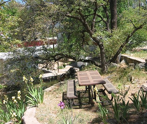 Only three blocks from the Courthouse Square, this classic 1950's style home is nestled high on a double lot surrounded by a large,terraced yard with mature trees. This classic-era home has an open floor plan and all appliances included. Features include: Beautiful original oak hardwood floors throughout the living spaces. Carport and ample off-street parking. Lots of closet and storage space. Additional separate storage shed. Kitchen includes: Energy efficient stainless steel refrigerator, retro copper stove vent and light, pot rack/cookbook shelves, spice racks, deluxe gas stove, microwave. Separate laundry area with a full-sized front loading washer and gas dryer. Master bedroom has east facing and south facing light, hardwood floors and a large closet with built in shelves Second bedroom also features south facing windows, a large closet with built in shelves and hardwood floors. All rooms have energy efficient thermostatically controlled ceiling fans. Bath features premium (nearly silent) bath fan with heat fan option, retro 50's tilework, huge linen closet with access from hallway. Large yard has lots of areas for gardening and relaxing. Natural gas forced air heating and A/C Tenant is responsible for all utilities including water, trash, gas, electric, cable, etc. and any other utilities. Tenant is responsible for all utilities including water, trash, gas, electric, cable, etc. and any other utilities. Approved rental app required ($40 processing fee per adult applicant). Minimum one year lease.
