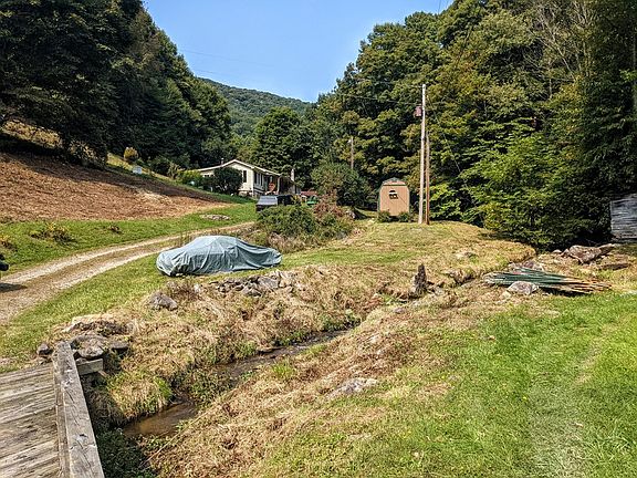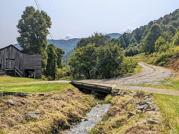 Bold Creek, Mini-Farm & Mountain Views! Back on the market through no fault of seller or property! Buyers changed their minds but now you have the opportunity to own! Relax to soothing sounds of bold creek bordering 5.17 acres from rocking chair covered porch! Pasture land, natural stone wall bordering creek, multiple barns, fenced area for livestock (currently 2 goats), chicken coops, land for additional homesite & more! Homesteading at its best w/end of rd privacy. Older home on property is of no value. 2BR/1BA farmhouse built in 1900 has some updates including metal roof installed in 2016 & minisplit but does need more. Original wood flooring throughout home (underneath subfloor in LR), tile in BA & vinyl in kitchen! Due to age of home, ceiling in kitchen/BA is less than 7ft high. Springhouse/Mud Rm off kitchen. Add. homesite available for those wishing to build. Various fruit trees (fig, pomegranate, grapes, etc.). Awesome opportunity to own!