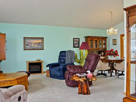 Spacious 2 bedroom, 2 bath rambler with office & covered back patio! Vaulted living/dining room with pass thru & door to patio. Eat-in kitchen with oak cabinets & all appliances. Heated & cooled 4 car garage with 2 entries into home. No back yard neighbors. Come see.