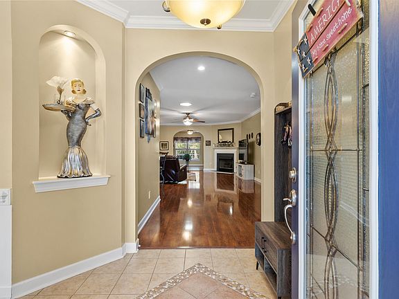 Look no further than this meticulously maintained 3 bedroom, 2.5 bathroom home, located on a cul-de-sac and offering an abundance of privacy in the Glenmoor Community. This residence, boasting a new roof installed in July 2022, offers a refined living experience with a host of desirable features. Upon entry, you're greeted by a thoughtfully designed split bedroom plan and will quickly notice all of the crown molding throughout. The focal point of the home is its inviting great room, complete with a fireplace featuring a convenient natural gas hook-up. Adjacent to this space lies the Carolina room, showcasing tile floors and providing picturesque views of the private backyard. The heart of the home is the spacious kitchen, outfitted with solid-surface countertops, an island, stainless steel appliances, a work station, breakfast nook, and an impressively large pantry. Additionally, the kitchen offers numerous cabinets with pull-out shelves and a tasteful tile backsplash. The kitchen is also equipped with a new refrigerator, ensuring modern convenience in the heart of every home. For formal gatherings, the dining room offers an elegant ambiance, featuring wood floors, chair rails, wainscoting, and a bay window. The luxurious primary bedroom is appointed with a crystal overhead ceiling fan light nestled within the tray ceiling, crown molding, and two walk-in closets. Its ensuite primary bath boasts a glass door shower, garden tub, double vanity with each hosting its on sink, and a separate toilet equipped with a bidet. Two generously sized guest bedrooms and a guest bath, complete with dual sinks and a linen closet, provide comfort and convenience for family or visitors. Practical amenities abound, including a laundry room with cabinets and a 3-year-old washer and dryer, as well as a half bath showcasing a new vanity and wood floor. Facilitated by three solar tubes strategically placed throughout the home, natural light floods the living spaces. Entertain or relax in the screened porch featuring roll-down blinds. Outdoor enthusiasts will appreciate the seamless gutters with gutter guards, hurricane shutters, sprinkler system (inspected October 2023), and LED lights. The property also features a natural gas connection, not only servicing the fireplace and grill but also offering the potential to power additional amenities. A 16x33 private in-ground pool with an updated pool timer, promise endless hours of enjoyment while soaking in the Carolina sunshine in your own back yard oasis. Additional highlights include a keyless keypad for the garage with remotes, a painted walkway leading to the pool, all-new window screens, and an HVAC system (inspected March 2024) with eight years of service and two years remaining on the warranty. Security features include a home defense pest control system, Vector security system, and blinds throughout the house. Convenience meets affordability with the inclusion of basic cable, trash pick-up, and access to the neighborhood pool covered by the HOA. Schedule your tour today!