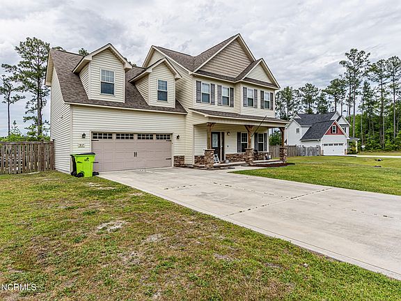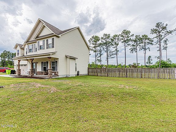 Welcome Home to 517 Maggie's Court nestled in a culdesac on over a half of an acre and a quick drive to both Camp Lejeune and MCAS New River! This 3 bedroom, 2.5 bath home also features a MASSIVE BONUS ROOM UPSTAIRS and a spacious wood privacy fenced back yard! You'll love the flow of this floor plan that makes it very easy to entertain, but also functional for every day use! New carpet was just installed in the spacious living room May 2023! The kitchen is complete with all stainless appliances, tons of cabinet and counter space, a pantry, a large kitchen island & it is open to the formal dining room!
