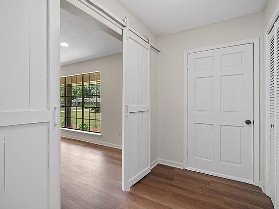 Home has formal dining that could be great office space. The foyer has custom barn doors that separate the formal living space from foyer. Bookshelves are on each side of fireplace in great room. The separate formal living and great room provide lots of living space inside the home. But don't overlook the covered back area for great outdoor entertaining. The master bath has a beautiful walk-in shower. New flooring, lighting, appliances, paint inside and outside home, and much more...