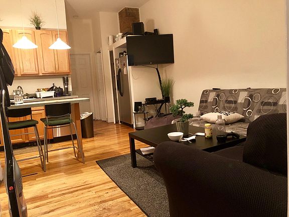Spacious two bedroom apartment in Hoboken. Hardwood floors throughout, spacious kitchen with a dishwasher and small peninsula island, two wall mounted TVs included and a private outdoor seating area. Centrally located for access to everything - restaurants, cafes, shopping and transportation. Owner pays for trash and sewer.