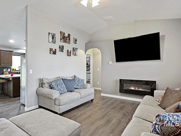 Quiet subdivision in the country! If you are looking for an updated home just outside of town, look no further. This home offers 3 bedrooms, 2 bath, 1112 sqft with large back yard. Garden area. Patio is covered for those nice summer evenings. Inside has been fully updated with epoxy counter tops, updated cabinets, tile back splash, new flooring through out home. Both bathrooms updated with new sinks and flooring, both have radiant heating in floor. New light fixtures through out. Home will come fully furnished with King bed in master, tv and electric fire place in master, washer dryer, couches, tv, and electric fireplace in living room, and all stainless steel kitchen appliances. you don't want to miss this one! No HOA Fees! Option to have seller paint exterior any color you choose! One year home warranty.